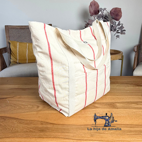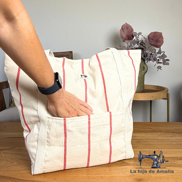 Exterior : Lienzo 100% algodón rayando con bolsillo externo con velcro.