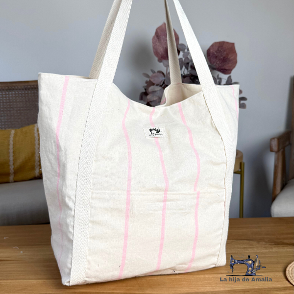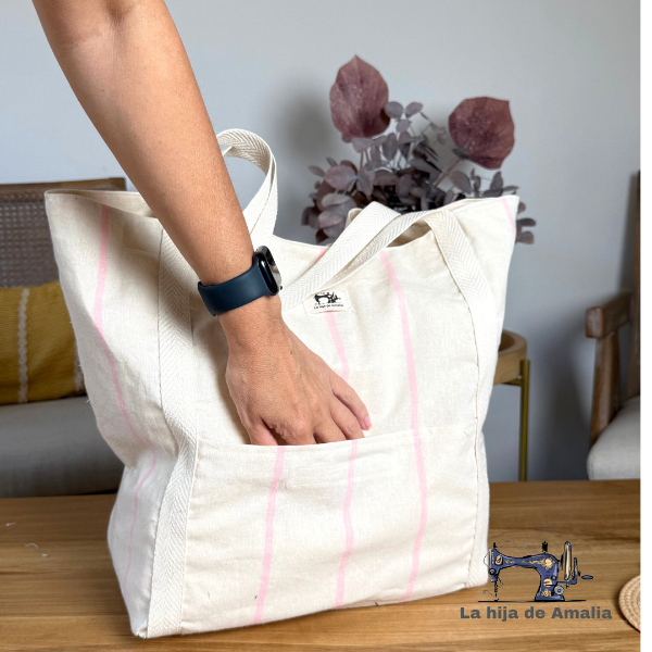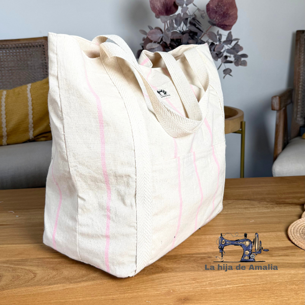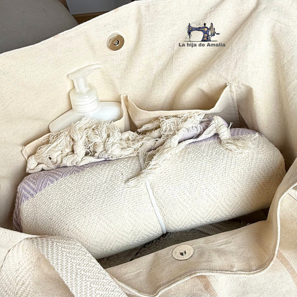 Interior: Lienzo mezcla algodón/ poliéster liso con doble bolsillo y cierre imantado.